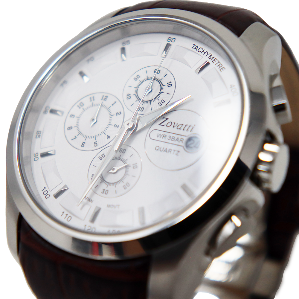 The chronograph second hand keeps continuously for 11 hours 59 minutes 59 seconds after starting.
