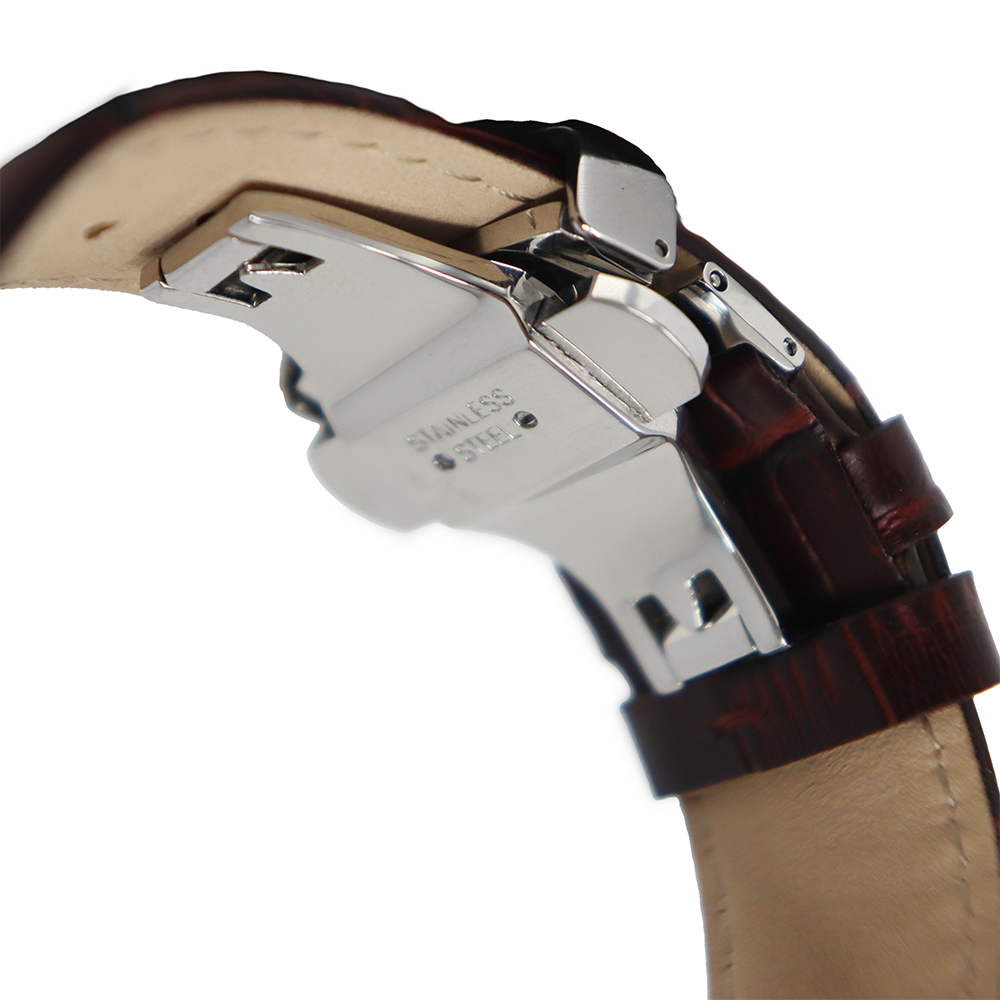 Pressing button “B” resets the chronograph and the chronograph second hand and chronograph minute hand return to zero position.